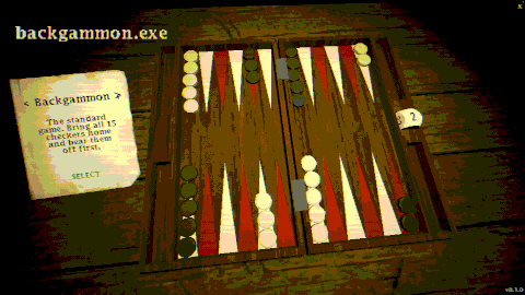 backgammon.exe is a stylized 3D backgammon game with a tactile tabletop feel. Play classic backgammon and several variants in a moody retro-inspired presentation.
